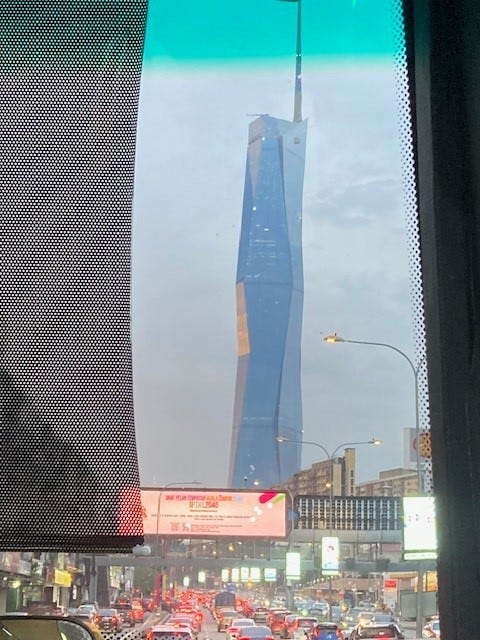I opened my eyes, lifted the shade, and squinted out the window. A big, radiant sun was rising over a pristine white-washed city, surrounded by an army of idled cargo ships awaiting their call of duty. After seventeen straight hours of feeling like a canned sardine in my economy airplane seat, we finally landed in Singapore. Modern and clean, with delicious food, and a classy comfortable ambience, this picturesque city was the perfect place to rest up before continuing on a bus to Kuala Lumpur (KL), capital of Malaysia. It's my first time in Malaysia, and so far, I haven't been disappointed. First thing I noticed was Merdeka, the second tallest building in the world! I've never seen anything like it, towering 2,227 feet over KL with divine majesty. Merdeka's courtiers are equally impressive. The Petronas Twin Towers, Exchange 106, Four Seasons Place, Oxley Tower 1, and many more. Outside my window is the Kuala Lumpur Tower that lights up at night with an array of gorgeous colors. I've never seen a more radiant and magical city by night. Otherwise known as 'The Garden City of Lights' the Kuala Lumpur metropolis comes alive with all kinds of twinkling colors that decorate darkness.